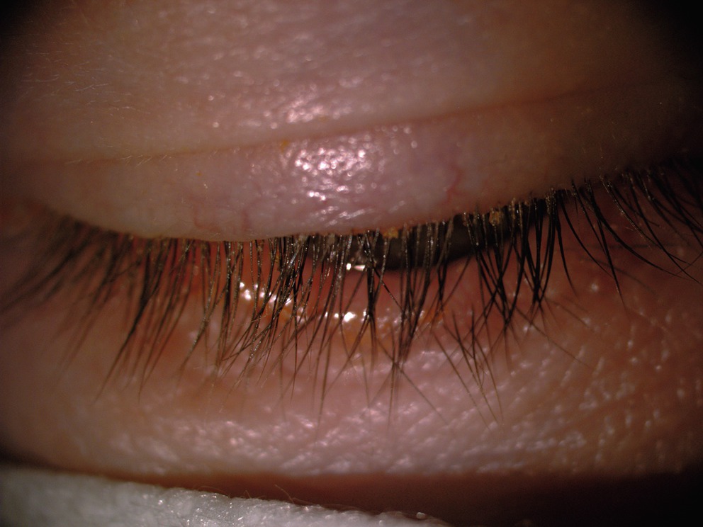 ), la blépharite à Demodex (croûtes de sébum cylindriques engainant la base des cils; fig. 16-5
